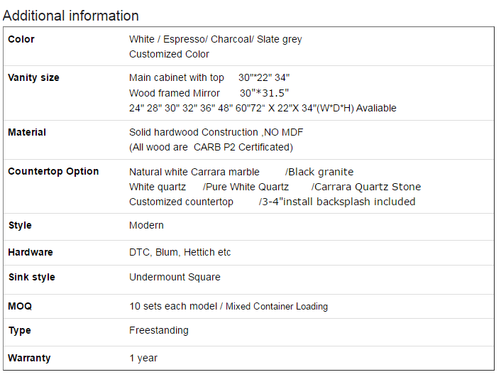 Mainly produces bathroom cabinet, bathroom accessories and interior door.